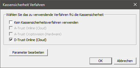 D-Trust Online (Cloud) aktivieren und „Parameter bearbeiten“ anklicken